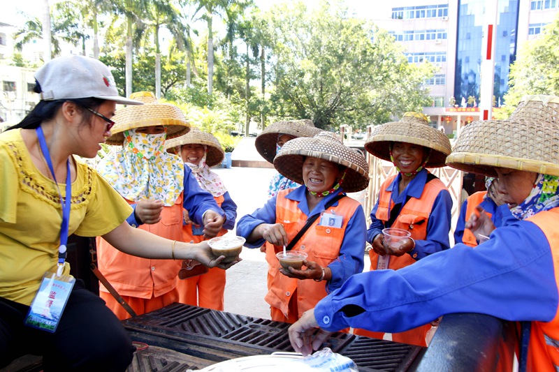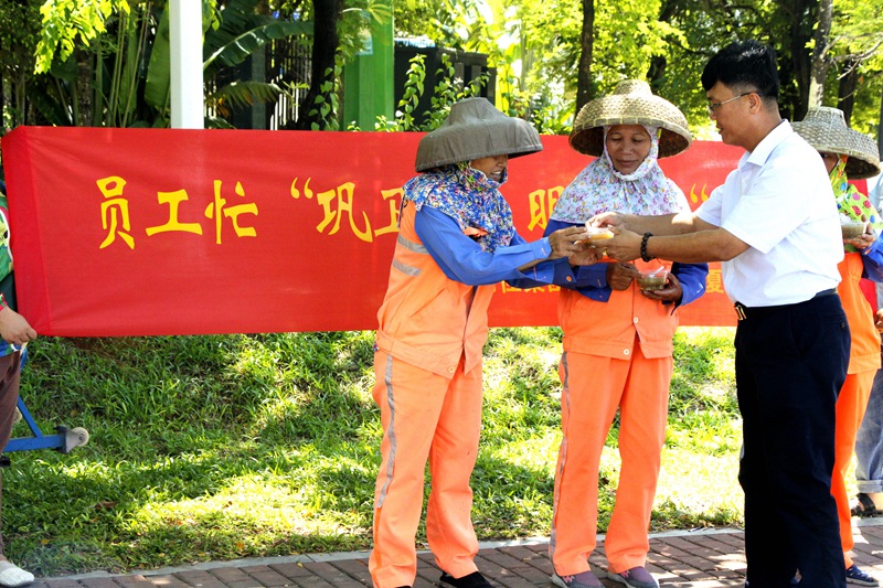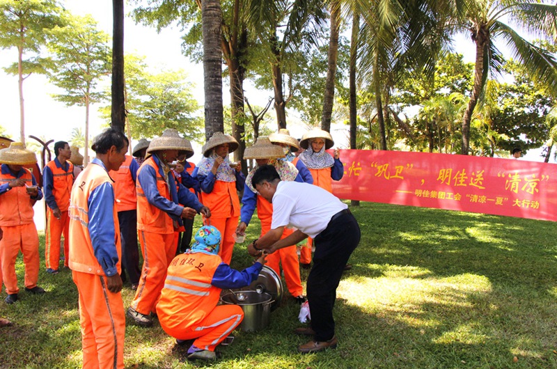 7月3日,集團(tuán)公司主席工會(huì)主席高斐斐率慰問組一行,到鳳凰路一中路段、海虹廣場(chǎng)等地為正在高溫下作業(yè)的員工送去降溫解暑的綠豆湯,送上公司以及工會(huì)組織的關(guān)懷和問候。