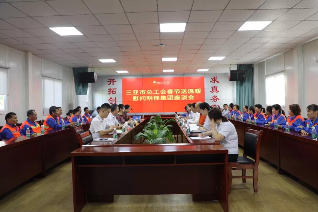 最后,慰問團一行來到三亞明佳園林環衛集團有限公司召開座談會。會上,慰問團展開討論了高齡、高風險環衛從業人員的權益保障問題,并詳細了解了企業職工在工作、生活中存在的問題,并認真聽取他們的訴求和建議。