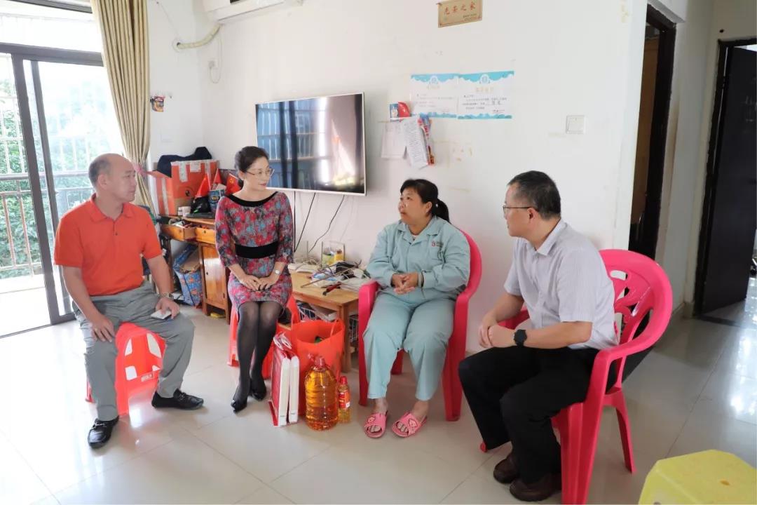 在明佳環衛公司建檔困難職工方金花家中,張華同志詳細了解她的家庭生活情況及實際困難,鼓勵他要繼續保持樂觀的心態,堅強面對生活。