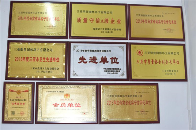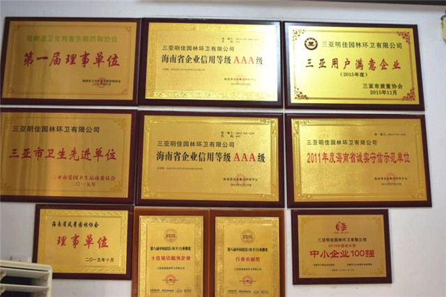 目前母公司連續(xù)五年被海南省企業(yè)信用評(píng)定中心評(píng)定為信用AAA等級(jí)單位,并榮獲中國清潔清洗行業(yè)國家一級(jí)資質(zhì)、城市環(huán)境衛(wèi)生經(jīng)營(yíng)服務(wù)A級(jí)資質(zhì)、城市園林綠化三級(jí)資質(zhì),被中國清潔行業(yè)推選為國家三星級(jí)企業(yè)、十佳清潔服務(wù)企業(yè)、杰出貢獻(xiàn)企業(yè),并榮獲2016年中國清潔行業(yè)百強(qiáng)品牌,成為中國清潔行業(yè)常務(wù)理事單位、中國衛(wèi)生有害生物防制協(xié)會(huì)會(huì)員單位、中國城市環(huán)境衛(wèi)生協(xié)會(huì)會(huì)員單位、海南省衛(wèi)生協(xié)會(huì)理事單位、三亞市環(huán)境保護(hù)協(xié)會(huì)副會(huì)長(zhǎng)單位,公司先后多次獲得國家、省、市獎(jiǎng)勵(lì)和表彰40余次,成功在海南省股權(quán)交易中心掛牌,代碼:90777,并積極籌劃在新三板上市,已真正成為海南省環(huán)衛(wèi)行業(yè)的龍頭企業(yè)。